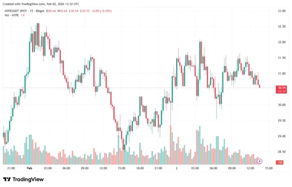 15-Minuten-Chart des $HYPE /USDT-Paares der Bitget-Börse. Quelle: TradingView.