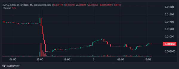 SANAET/USD-Stundenchart auf Raydium. Quelle: DEX Screener.