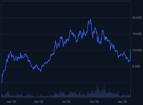 Laut CoinMarketCap überstieg die Marktkapitalisierung des Vermögenswerts erstmals seit Dezember 2025 die Marke von 10 Milliarden US-Dollar: