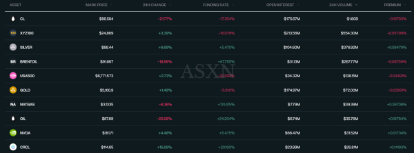 BitMEX-Mitbegründer Arthur Hayes wies zuvor auf die starke Performance der TradeXYZ-Instrumente im Nasdaq 100 und S&P 500 sowie von Gold und Silber hin. Er sagte, diese Indikatoren würden das Wachstum der Kennzahlen von Hyperliquid beflügeln.