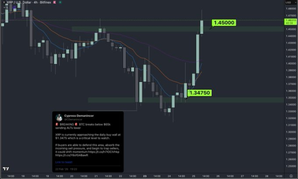 Analysten warnen jedoch, dass ein Unterschreiten der Marke von 1,40 US-Dollar das gegenteilige Szenario zur Folge haben könnte. In diesem Fall könnte XRP in Richtung der Marke von 1,35 US-Dollar korrigieren, wo sich die nächste potenzielle Unterstützungszone befindet.