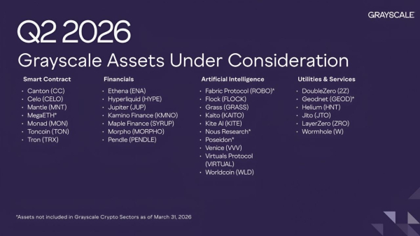 Der führende Krypto-Investor Grayscale Investments hat eine aktualisierte Liste digitaler Vermögenswerte veröffentlicht, die er für zukünftige Anlageprodukte im zweiten Quartal 2026 in Betracht zieht.