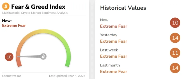 Die allgemeine Marktstimmung bleibt pessimistisch, trotz des Kursanstiegs von Bitcoin um 9,5 % in der vergangenen Woche. Der Fear-and-Greed-Index ist auf 10 gefallen.
