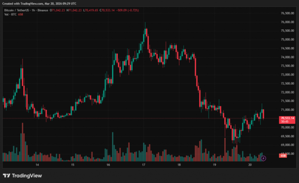 Der Bitcoin-Kurs ist in den vergangenen 24 Stunden um 1,5 % gestiegen, nachdem er unter 70.000 US-Dollar gefallen war. Zum Zeitpunkt der Veröffentlichung dieses Artikels notiert die führende Kryptowährung bei rund 70.500 US-Dollar.