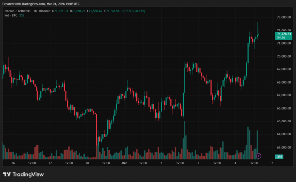 Bitcoin konsolidiert sich derzeit nahe seines 200-Wochen-Durchschnitts, einem Niveau, das in der Vergangenheit häufig mit Markttiefs einherging. Zum Zeitpunkt der Veröffentlichung dieses Artikels notiert die Kryptowährung bei rund 71.600 US-Dollar. Ihr Kurs ist in den letzten 24 Stunden um 6,7 % gestiegen.