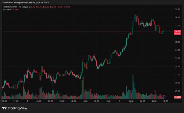 Bitget-Börse: HYPE/USDT-Chart (15-Minuten-Chart). Quelle: TradingView.
