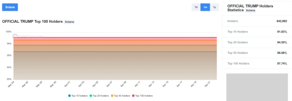 Sun gehört zu den größten Inhabern des TRUMP-Memecoins. Laut CoinCarp ist die Verteilung dieses Vermögenswerts stark zentralisiert; über 91 % des Angebots konzentrieren sich auf nur 10 Adressen.
