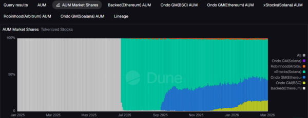 Das gesamte Transaktionsvolumen der xStocks-Instrumente hat seit dem Start bereits 25 Milliarden US-Dollar überschritten. Laut Dune machen xStocks im Solana-Netzwerk 46 % des tokenisierten Aktienmarktes aus. Zum Vergleich: Die Instrumente des Hauptkonkurrenten – die Ondo-Plattform (auf Ethereum und der BNB Chain) – erreichen einen Marktanteil von 52 %.