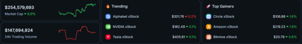 Daten von CoinGecko bestätigen die Popularität der Tools von Backed: Der Gesamtmarktwert des xStocks-Ökosystems hat 254 Millionen US-Dollar erreicht, und das tägliche Handelsvolumen übersteigt 147 Millionen US-Dollar.