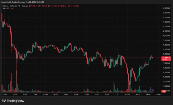 Zum Zeitpunkt der Veröffentlichung dieses Artikels notiert die erste Kryptowährung bei rund 77.600 US-Dollar (minus 1,8 % pro Tag).