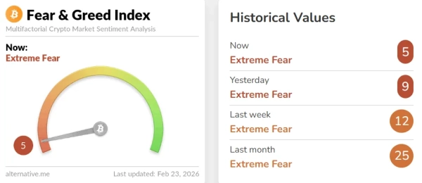 Der Angst- und Gierindex sank auf 5 von 100 Punkten. In der gesamten Geschichte der Beobachtungen hat der Indikator noch nie so niedrige Werte verzeichnet.