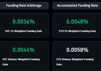 Zum Zeitpunkt der Erstellung dieses Dokuments beträgt die Finanzierungsrate für die erste Kryptowährung 0,0036 % und für Ethereum 0,0048 %.