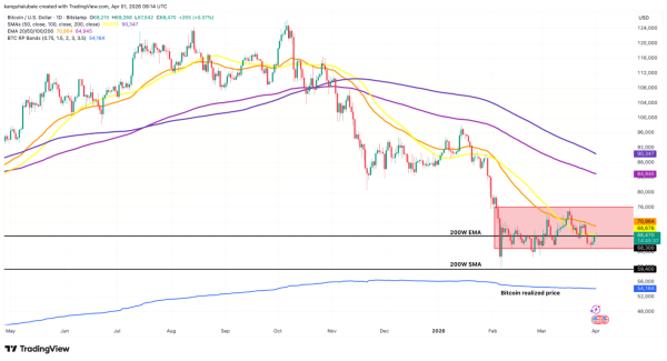 Im Folgenden bleiben die wichtigsten Kursmarken der 200-Wochen -EMA bei 68.300 US-Dollar und der 200-Wochen -SMA bei rund 59.400 US-Dollar .
