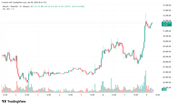Bitcoin durchbricht die 72.000-Dollar-Marke inmitten des Waffenstillstands zwischen den USA und dem Iran