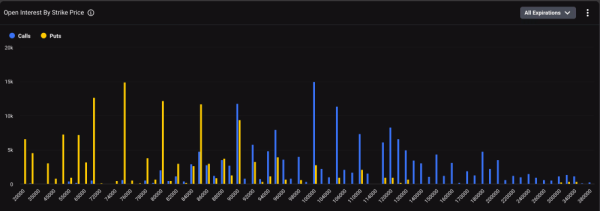 Während die Put-Option mit einem Ausübungspreis von 75.000 US-Dollar die beliebteste bärische Strategie ist, ist auch bei Put-Optionen mit Ausübungspreisen von 70.000 US-Dollar, 80.000 US-Dollar und 85.000 US-Dollar ein signifikantes offenes Interesse zu beobachten. Bei Call-Optionen mit höheren Ausübungspreisen gibt es hingegen keine vergleichbare Aktivität, mit Ausnahme der Option mit einem Ausübungspreis von 100.000 US-Dollar.