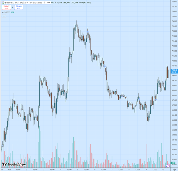 Bitcoin: Rückblick auf den 10. März – Kurs testet die 70.000-Dollar-Marke