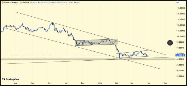Der Analyst CryptoSanders9563 merkte an, dass Bitcoin technisch gesehen weiterhin in einem Abwärtskanal verbleibt und die aktuelle Erholung wie eine „Bärenflagge“ aussieht, da die Struktur niedrigerer Hochs noch nicht durchbrochen wurde.