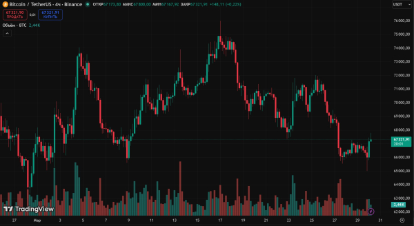 Wichtige Kursmarken: Unterstützung – 65.000 $, Widerstand – 70.000 $. Für eine Trendumkehr muss der Kurs 72.000 $ erreichen.