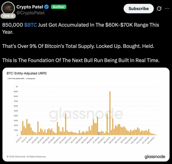Gleichzeitig setzt sich die großflächige Akkumulation der führenden Kryptowährung fort. In diesem Jahr erwarben Investoren rund 850.000 BTC im Wert von jeweils 60.000 bis 70.000 US-Dollar und transferierten diese anschließend von Handelsplattformen in Cold Wallets.