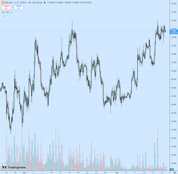 Bitcoin: Rückblick vom 17. April – Konsolidierung setzt sich um 75.000 US-Dollar fort