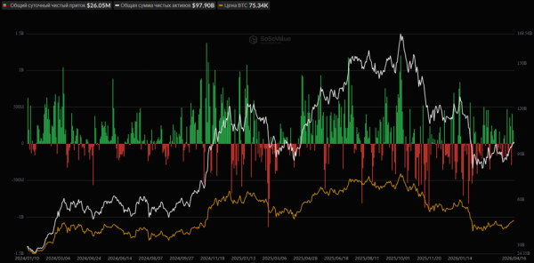 Die Zuflüsse in Spot-ETFs mit Bitcoin sanken von 186 Millionen US-Dollar am Vortag auf 26 Millionen US-Dollar. Dieser positive Trend setzte sich den dritten Tag in Folge fort.