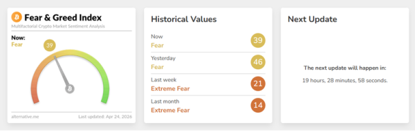Der Fear and Greed Index fiel von 46 auf 32 Punkte und verblieb damit im Angstbereich.