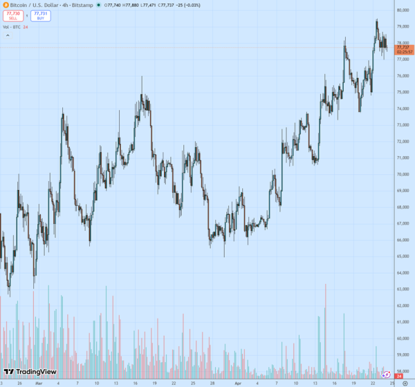 Bitcoin: Rückblick vom 24. April – Der Kampf um die Kontrolle über 78.000 US-Dollar