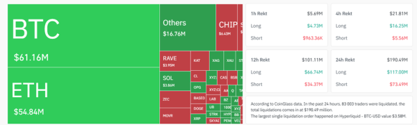 Laut Coinglass waren in den letzten 24 Stunden die Liquidationen von Bitcoin-Long-Positionen mit einem Gesamtvolumen von 36 Millionen US-Dollar anderthalbmal so hoch wie die erzwungenen Schließungen von Short-Positionen mit einem Gesamtvolumen von 25,1 Millionen US-Dollar.