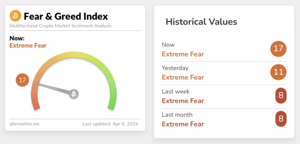 Der Fear and Greed Index schnellte unterdessen von 11 auf 17 hoch. Trotz der positiven Stimmung verbleibt der Indikator jedoch im Bereich extremer Angst, was auf anhaltende Skepsis unter Privatanlegern hindeutet.