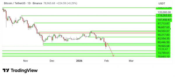 Analyst Crypto Candy merkt an, dass Bitcoin die untere Grenze der Spanne von 80.000 bis 81.000 US-Dollar durchbrochen und darunter geschlossen hat. Er argumentiert, dass der Kurs aufgrund aktiver Manipulationen die Unterstützungsniveaus durchbricht, als ob diese nicht existierten.