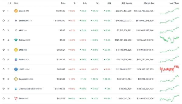 Am Abend des 3. Oktober stieg die führende Kryptowährung über 123.000 US-Dollar und Ethereum überschritt die 4.500-Dollar-Marke.