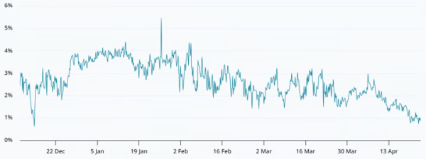 Gleichzeitig ist das Interesse an gehebelten Long-Positionen merklich zurückgegangen. Die Nachfrage nach solchen Positionen ist auf ein Viermonatstief gefallen.