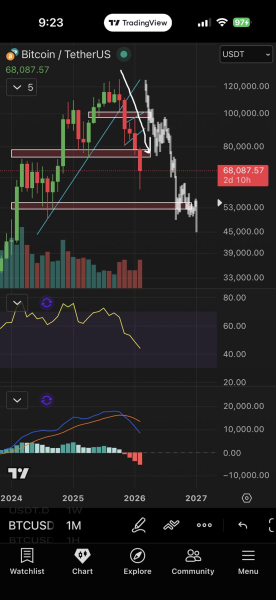 Trader Roman wies auf die typischen Rückgänge vergangener Bärenmärkte hin. Laut Glassnode verlor Bitcoin in früheren Zyklen rund 80 % seines Höchststandes. Beim 15-Monats-Tief Anfang Februar lag die maximale Korrektur des Bitcoin /US-Dollar-Kurses bei etwa 53 % des Allzeithochs vom Oktober 2025. Roman warnte jedoch vor voreiligen Schlüssen: Jeder Bärenmarkt ging mit einem Rückgang von fast 80 % einher, und die Monats- und Wochencharts zeigen noch keine Anzeichen einer Trendwende.
