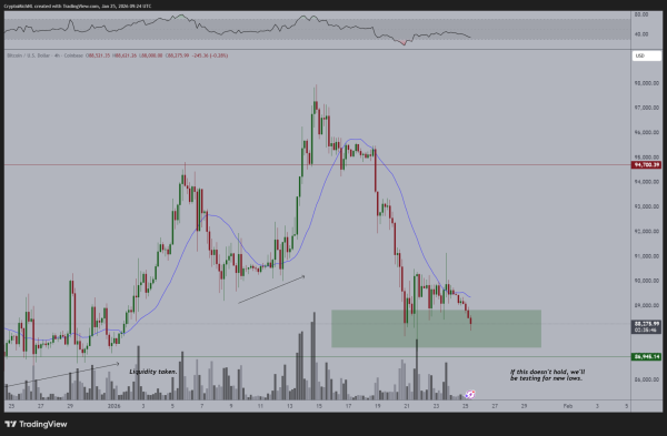 Der Experte weist außerdem auf die Kurslücke bei den CME-Futures im Bereich von 89.400 US-Dollar hin, die voraussichtlich im Laufe des Tages zu einer kurzfristigen Kurserholung führen wird.