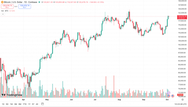 Der Oktober hat begonnen: Bitcoin hat ein 7-Wochen-Hoch von 120.000 US-Dollar erreicht.
