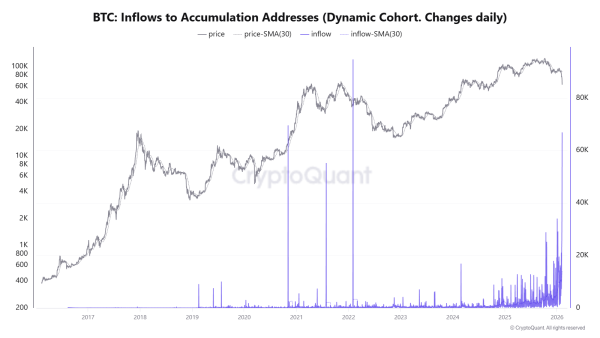 Am 6. Februar erreichten BTC im Wert von 66.940 US-Dollar die Adressen von Großinvestoren – der größte Geldzufluss in diesem Zyklus, so CryptoQuant.
