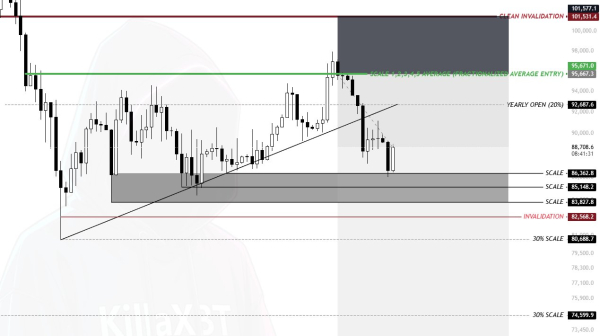 „Ich denke, im besten Fall steigen wir auf 89.000 bis 91.000 Dollar und fallen dann wieder zurück“, prognostizierte Händler Killa.