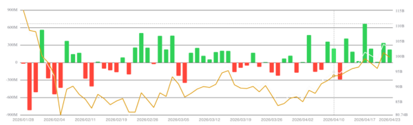 Es ist bemerkenswert, dass der aktuelle Aufwärtstrend, der sich zu einer nachhaltigen Dynamik für Bitcoin entwickelt, mit einer anhaltenden Rallye zusammenhängt, die über drei Wochen andauerte und am 29. März begann, als die Kryptowährung von der Unterstützung bei 64.955 US-Dollar abprallte. Nach diesem Anstieg legte Bitcoin wieder zu und verzeichnete einen Gewinn von rund 23 %.