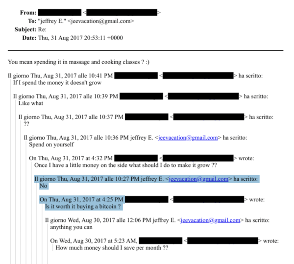 Bitcoin-Diskussion mit Epstein. Quelle: US-Justizministerium.