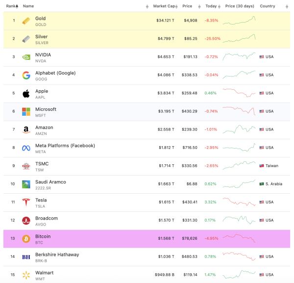 Bitcoin stürzte auf 75.555 US-Dollar ab und verlor damit 40 % seines Allzeithochs. Der Kurs fiel aus den Top 10 der globalen Kryptowährungen. Großvolumige Liquidationen in Höhe von 1,75 Milliarden US-Dollar übertrafen den FTX-Crash und den durch die Corona-Pandemie ausgelösten Einbruch. Der Kursverfall ging mit dem Durchbruch wichtiger technischer Niveaus und dem Übergang in einen Bärenmarkt einher, der zum prägenden Ereignis der Woche für die gesamte Kryptoindustrie wurde.