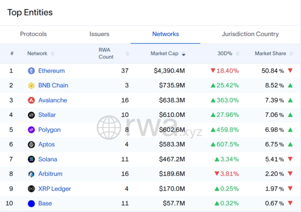 Laut RWA.xyz wurde Avalanche Ende des dritten Quartals zur drittgrößten Blockchain nach Volumen tokenisierter US-Staatsanleihen (638 Millionen US-Dollar), hinter BNB Chain und Ethereum.