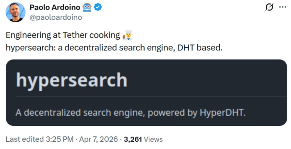 Tether hat mit der Entwicklung einer dezentralen Suchmaschine namens Hypersearch begonnen.
