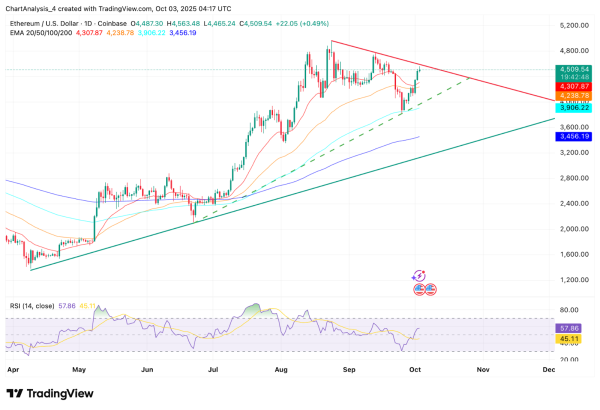 Ethereum startet in den Oktober an einem kritischen technischen Punkt. Die Befreiung von der US-Körperschaftssteuer sorgt für einen kräftigen Aufschwung, während der Preisrückgang eine größere Bewegung signalisiert.