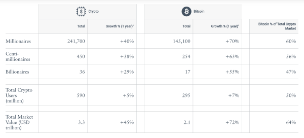 Die Zahl der Krypto-Millionäre ist um 40 % gestiegen.