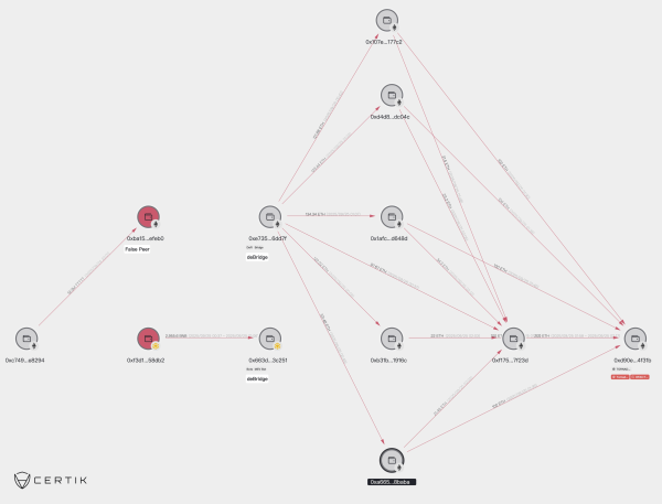 Laut CertiK initiierte der Angreifer einen gefälschten LayerZero Peer auf der Ethereum-Blockchain. Mithilfe dieses Schemas transferierte er 5 Milliarden gefälschte Token und prägte anschließend 5 Milliarden GAIN auf der BNB-Chain. Die daraus resultierenden Vermögenswerte wurden für rund 3 Millionen Dollar liquidiert.