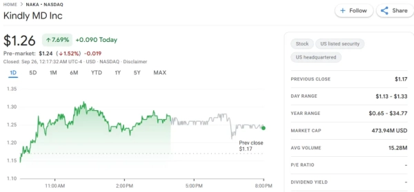 Kindly MD (NAKA) stieg innerhalb weniger Wochen um das 18,5-fache, fiel dann um 97 % und fiel wieder auf seinen PIPE-Preis von 1,12 $.