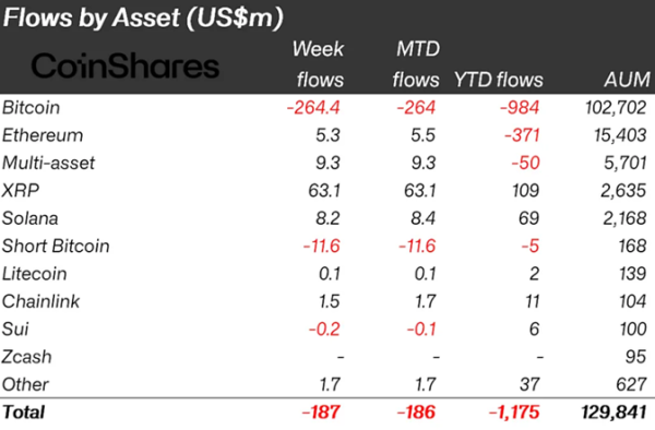 Investoren zogen 264,4 Millionen Dollar aus Bitcoin (BTC)-basierten Produkten ab, während die meisten Altcoins eine positive Entwicklung verzeichneten.