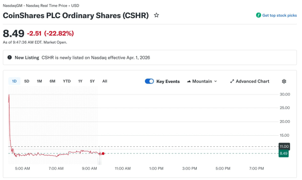 Am 1. April ging die Investmentgesellschaft CoinShares durch eine Fusion mit der SPAC Vine Hill Capital Investment Corp. im Wert von 1,2 Milliarden US-Dollar an der Nasdaq an die Börse. Die Aktien des Unternehmens werden unter dem Tickersymbol CSHR gehandelt.