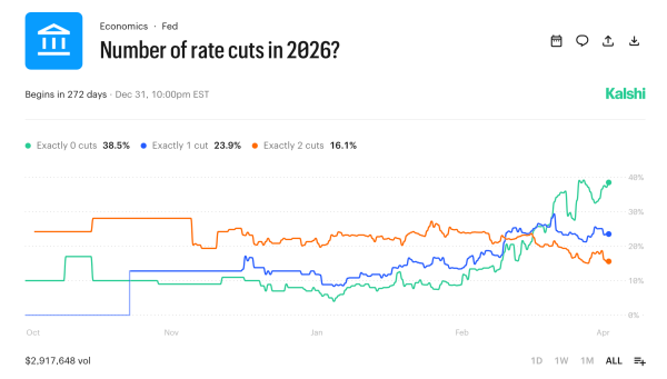 Prognosemärkte sind einfacher zu handhaben. Polymarket schätzt die Wahrscheinlichkeit für Zinssenkungen bis 2026 aktuell auf 36 %, gegenüber 10 % vor Kriegsbeginn. Die Wahrscheinlichkeit einer einzelnen Zinssenkung um 25 Basispunkte liegt bei 23 %. Kalshi schätzt die Wahrscheinlichkeit für ein Szenario ohne Zinssenkung auf 38,5 %. Das Handelsvolumen von 2,9 Millionen US-Dollar spiegelt das Vertrauen der Anleger wider, die reales Kapital riskieren.