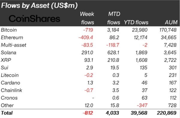 Einem Bericht von CoinShares zufolge wurden zwischen dem 19. und 27. September 812 Millionen US-Dollar aus Anlageprodukten für digitale Vermögenswerte abgezogen.